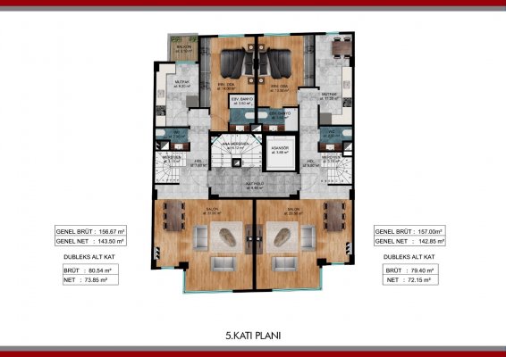 - Daire içi elektrik tesisatları (aydınlatma, priz, klima hatları) yüksek kalite malzeme ve güvenlik standartlarına uygun olarak döşendi.