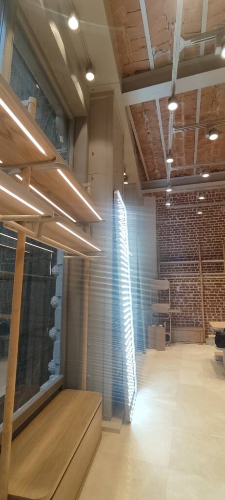 - Mağaza içi elektrik tesisatı, vitrin aydınlatmaları, priz sistemleri ve dağıtım hatları baştan sona döşendi.